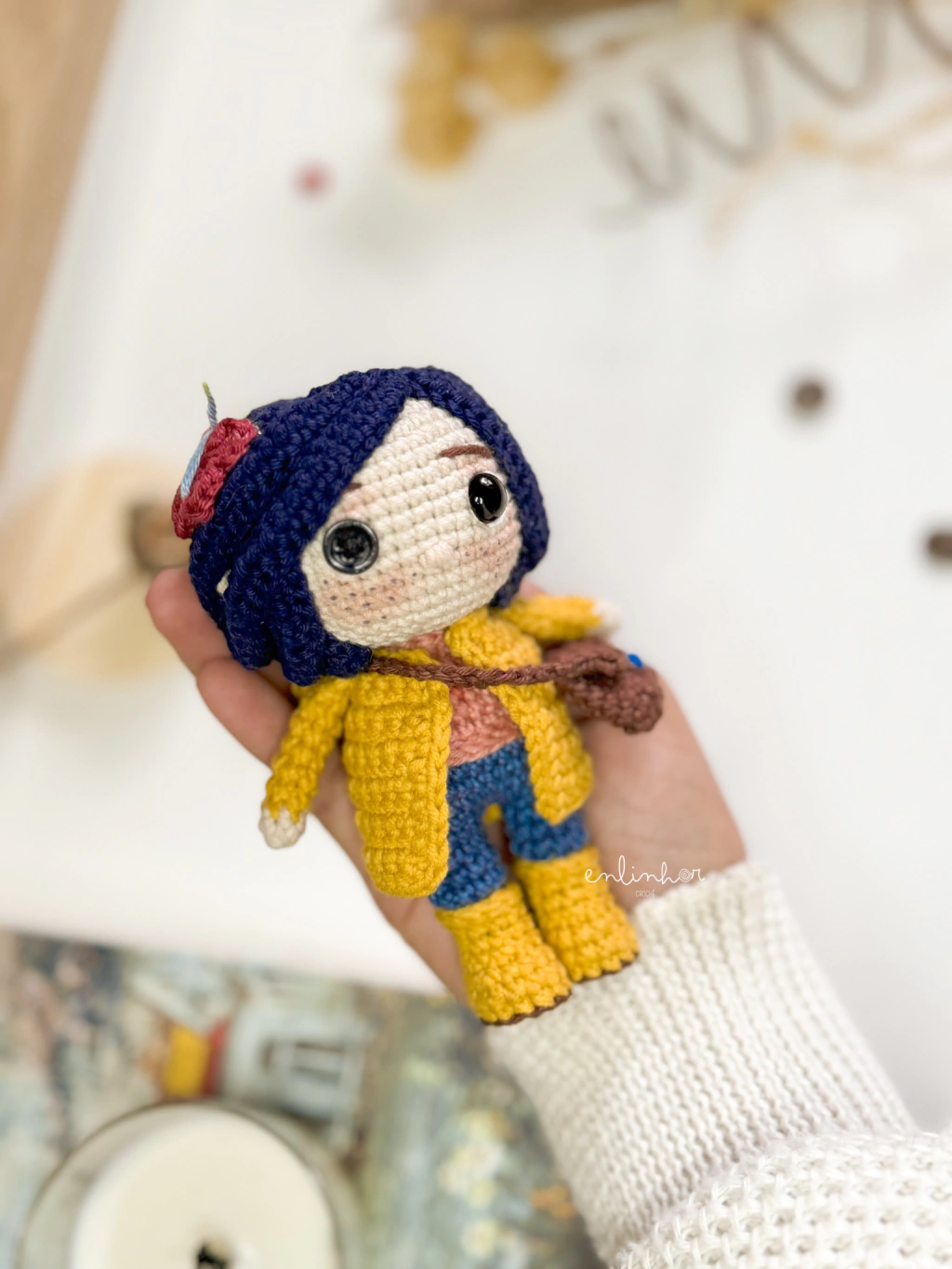CONTÉM: 1 arquivo PDF - Coraline Amigurumi (13cm)